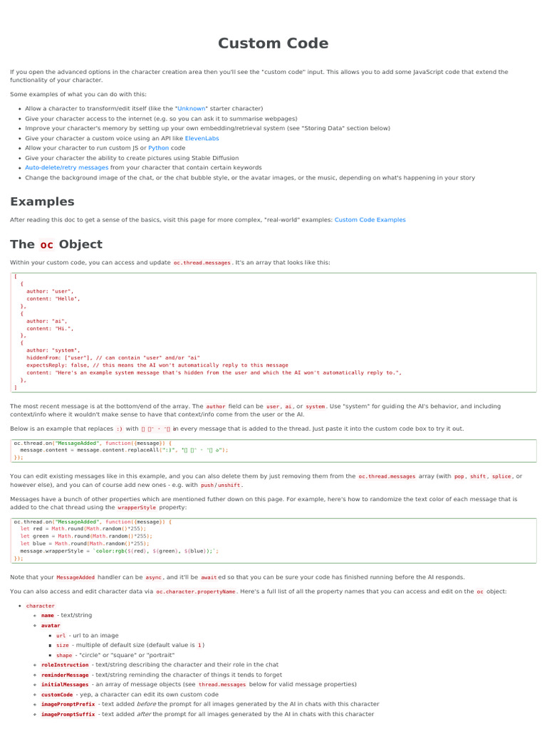 customCode - yep, a character can edit its own custom code
