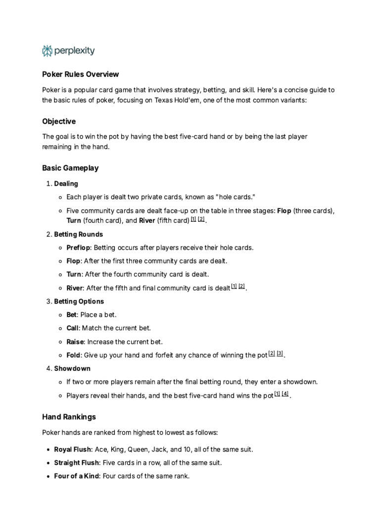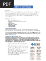Poker is a popular card game that involves strategy, betting, and skill. Here's a concise guide to