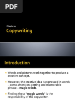 in copywriting uses words and the intention is usually to spur purchases. Welcome to the class.