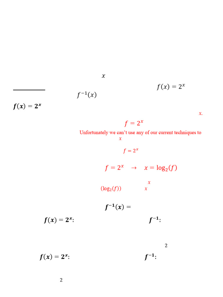 𝑓(𝑥 ) = 2𝑥 𝑓 = 2𝑥 → 𝑥 = log 2 (𝑓)