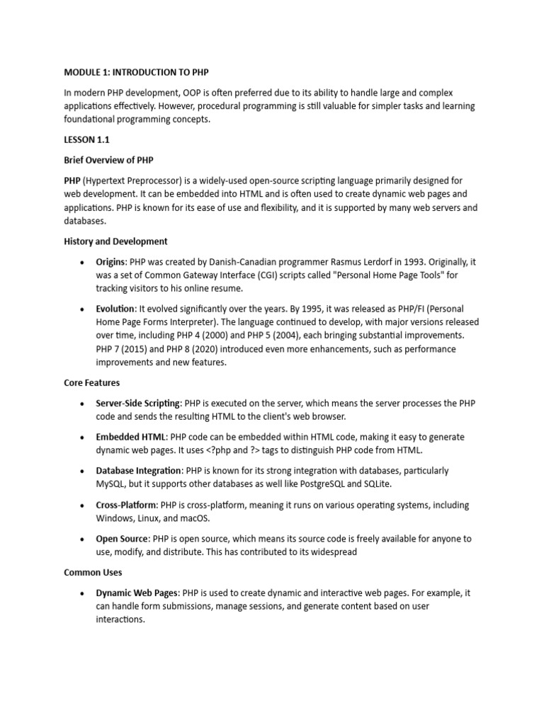 MODULE 1: INTRODUCTION TO PHP