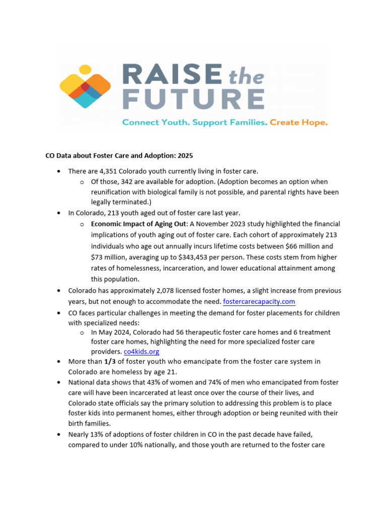• Raise the Future has placed over 11,000 youth with loving families since their founding