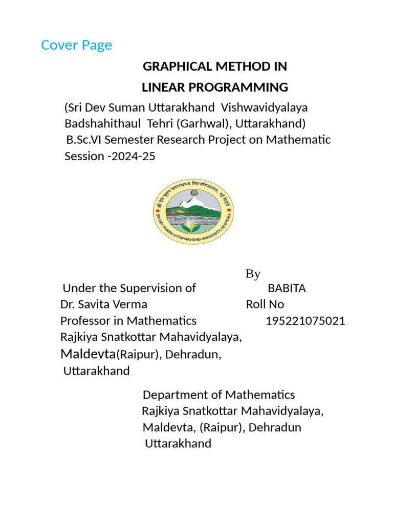 the Research Project report entitled “ GRAPHICAL METHOD IN