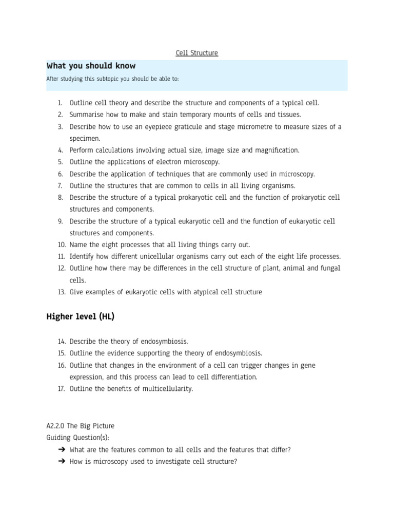 ➔ Outline cell theory and describe the structure and components of a typical cell