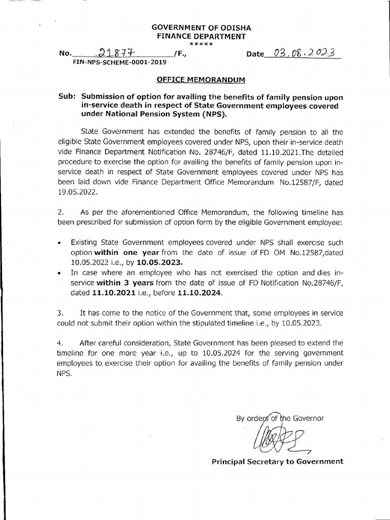 service death in respect of State Government employees covered under NPS has