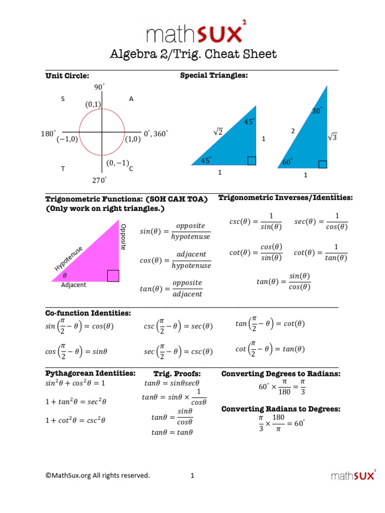 Trigonometric Functions: (SOH CAH TOA) Trigonometric Inverses/Identities: