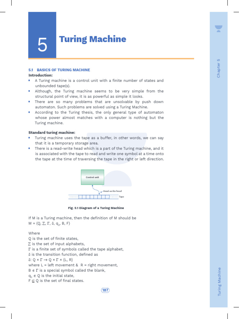 5.1 BASICS OF TURING MACHINE