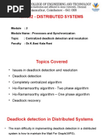 sion of the algorithm, an arbitrary process detects deadlock; and in a second version, the