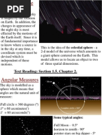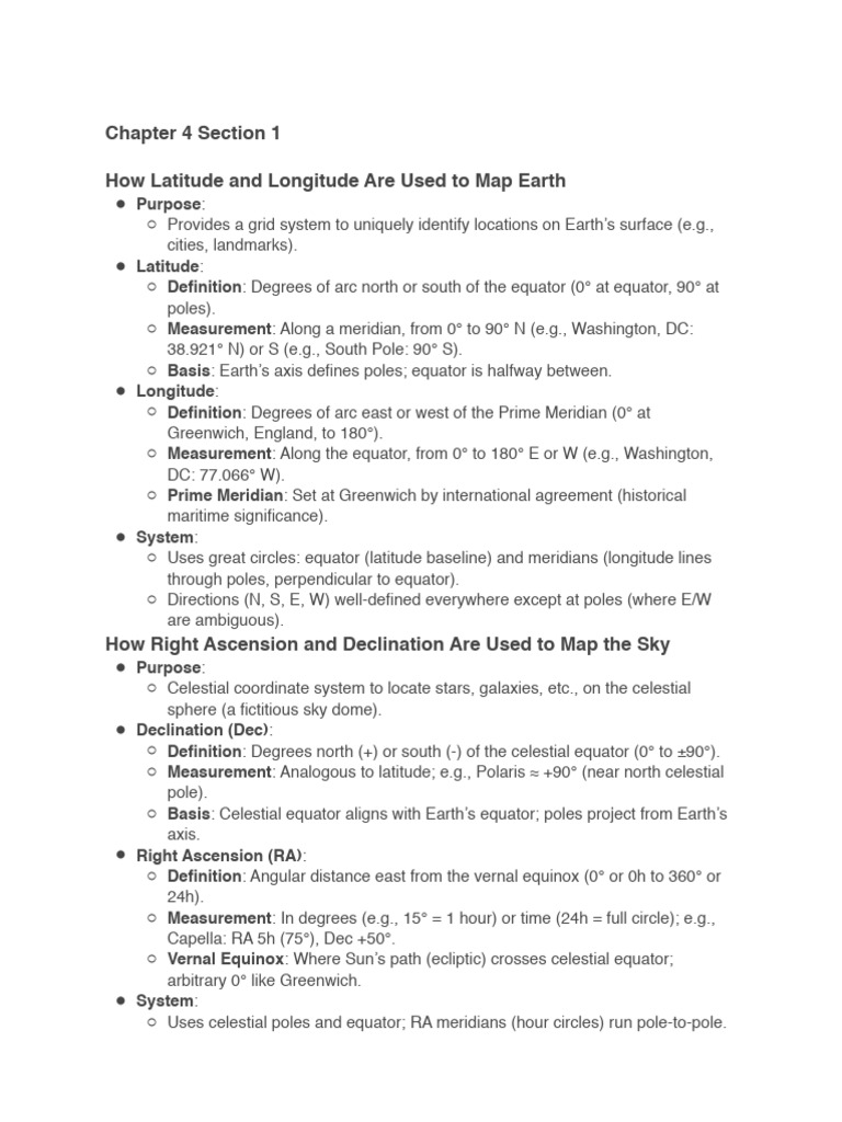 ○ Earth’s grid projects onto celestial sphere (e.g., equator → celestial equator,
