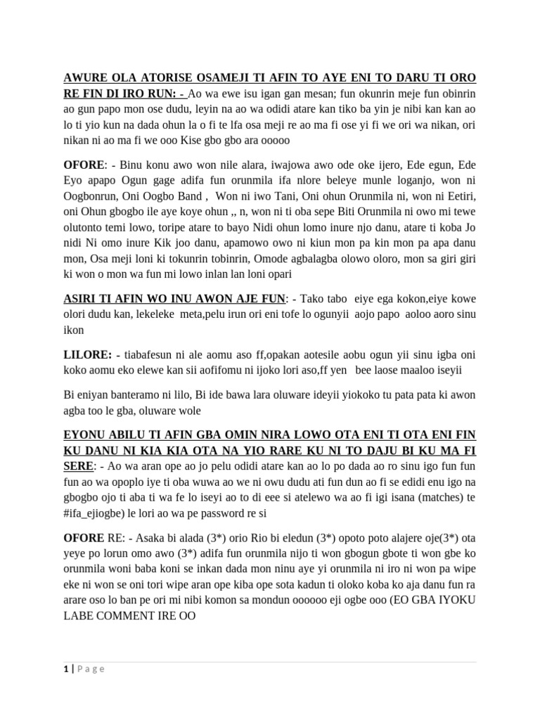 asin na awa jo pelu atare kan awada ebu yen sinu awo ipese amafi iye kowe ropo ama fila