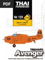 The document details the development and specifications of the Grumman TBM-3 Avenger torpedo bomber, which was selected for production by the U.S. Navy in 1939. It outlines the aircraft's design evolution, production history, and technical specifications, including its performance capabilities and various versions. Additionally, it provides assembly instructions for model builders, emphasizing the importance of precision and detailing in construction.