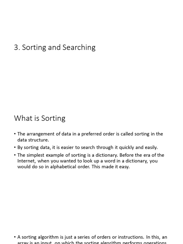 • The simplest example of sorting is a dictionary. Before the era of the