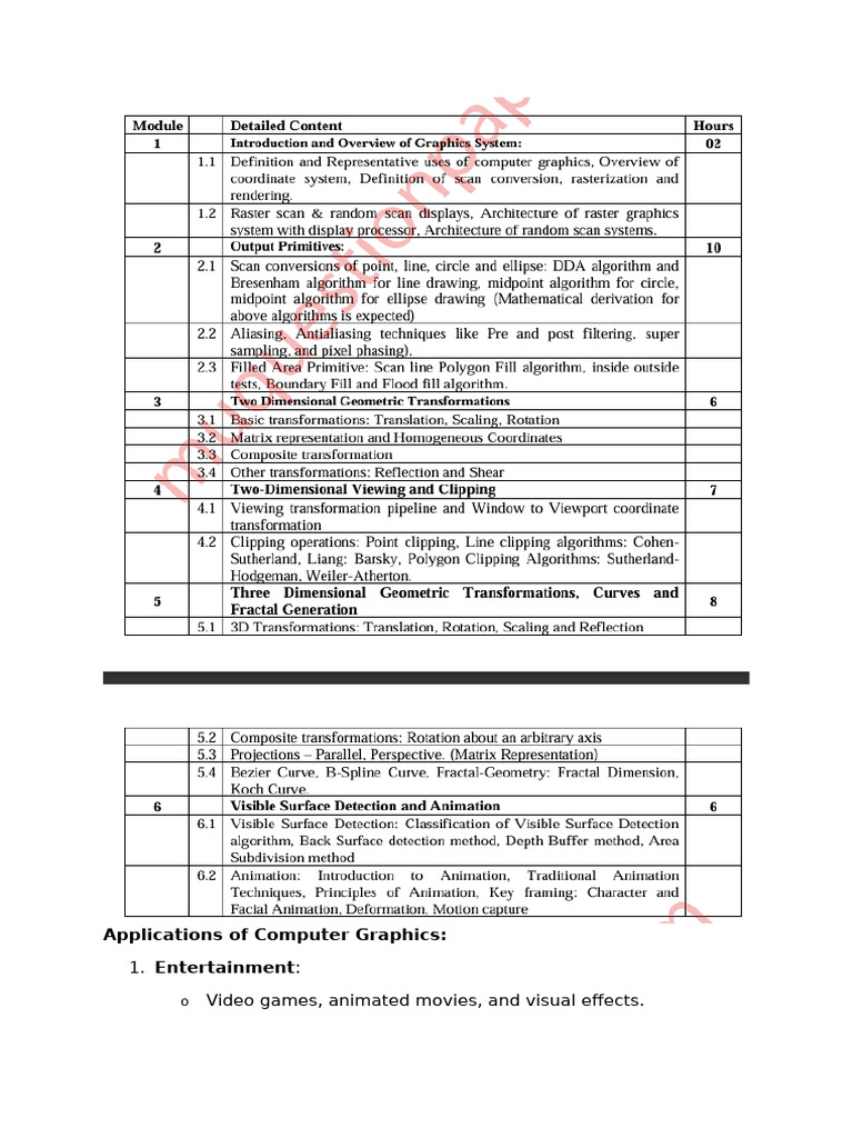 The document outlines various applications of computer graphics across multiple fields, including entertainment, design, education, medical imaging, and data visualization. It highlights the use of graphics in virtual and augmented reality, graphic design, web design, scientific research, GIS, and robotics. Each application showcases the importance of computer graphics in enhancing experiences and facilitating complex tasks.