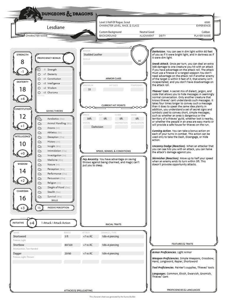 Level 5 Half-Elf Rogue, Scout 6500