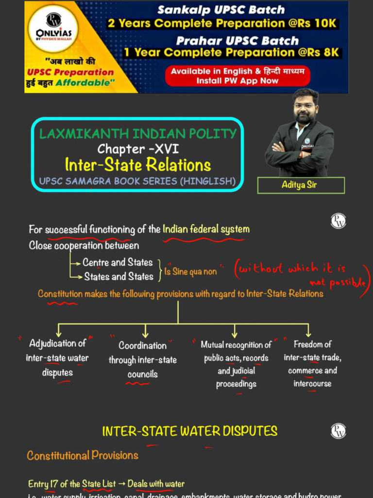 0 ratings 0% found this document useful (0 votes) 727 views 35 pages M Laxmikanth - Inter-State Relation - Chapter 16 - Class Notes - Samagra Book Series Batch (Hinglish)