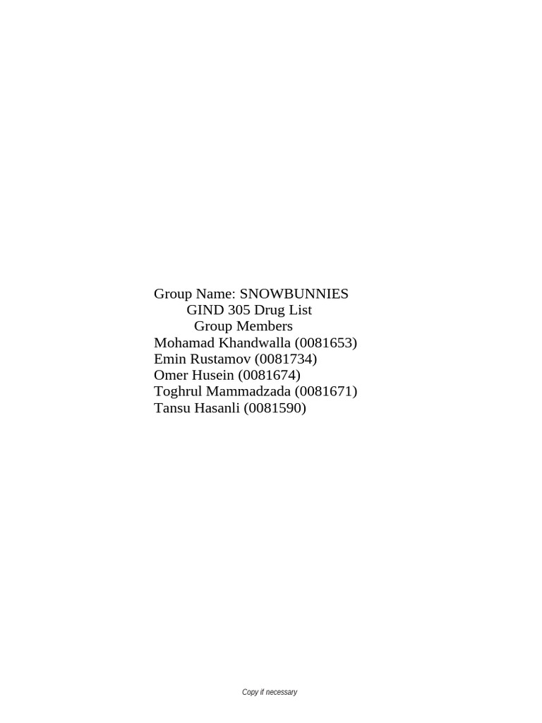 GIND 305 Drug List
