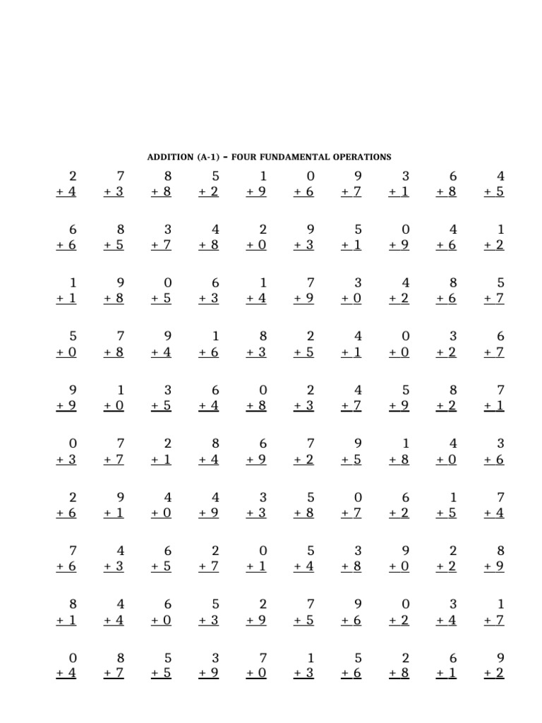 ADDITION (A-1) – FOUR FUNDAMENTAL OPERATIONS