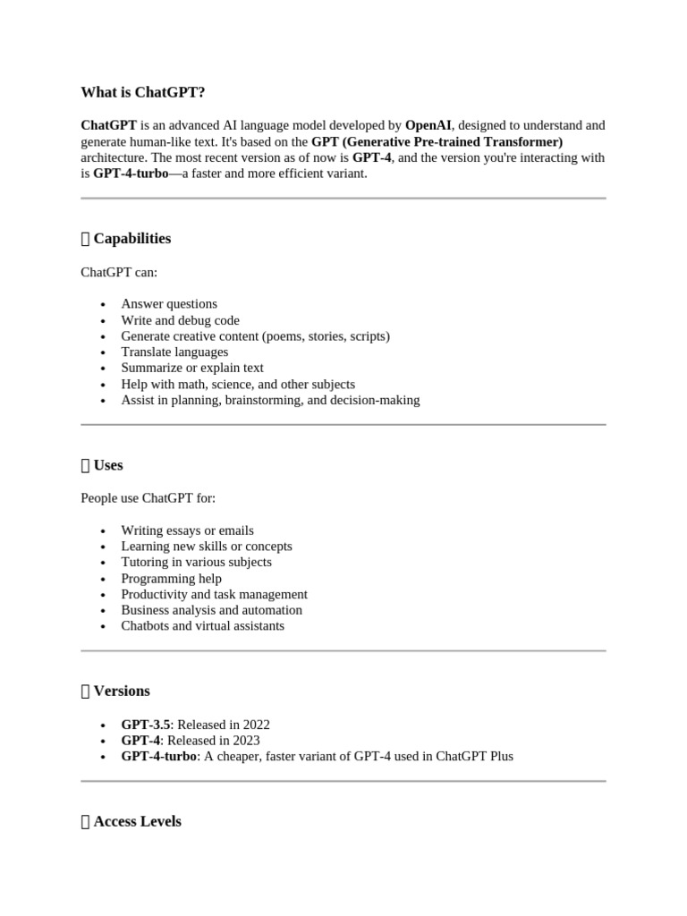 architecture. The most recent version as of now is GPT-4, and the version you're interacting with