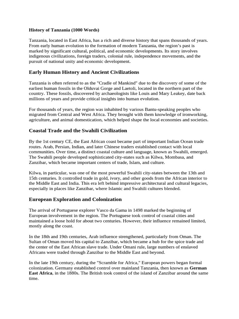 History of Tanzania (1000 Words)