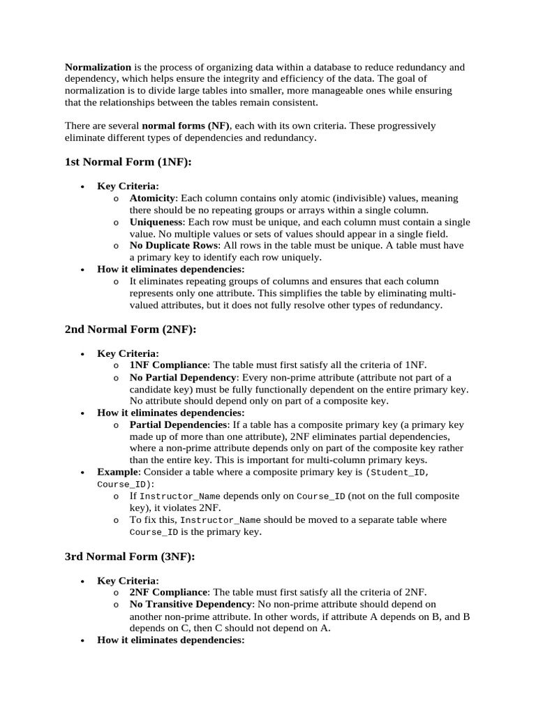 o Partial Dependencies: If a table has a composite primary key (a primary key