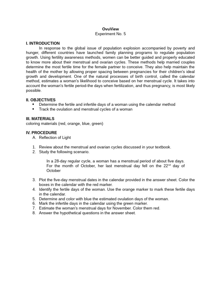 Determine the fertile and infertile days of a woman using the calendar method
