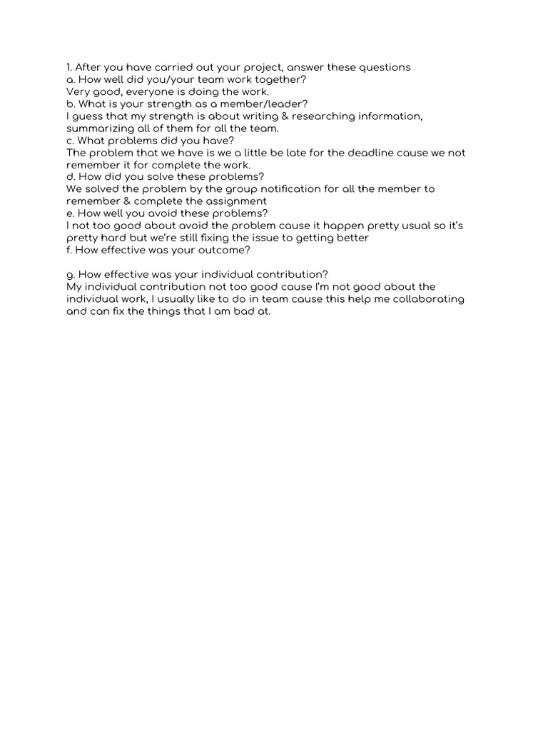 After you have carried out your project, answer these questions