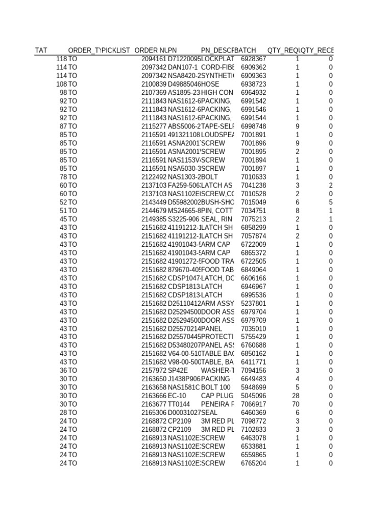 TAT ORDER_TYPICKLIST ORDER NUPN PN_DESCRBATCH QTY_REQUQTY_RECE