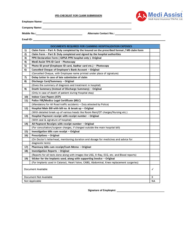 IPD-CHECKLIST FOR CLAIM SUBMISSION