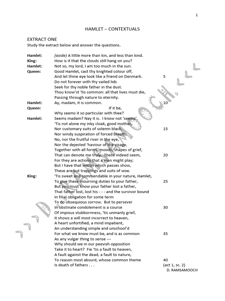 2. Account for the queen’s tone in ll. 1- 4 “O Hamlet! . . . leave their tinct”.