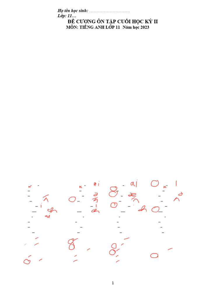 MÔN: TIẾNG ANH LỚP 11- Năm học 2023-2024