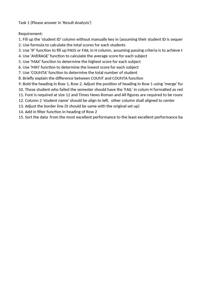 7. Use 'COUNTA' function to determine the total number of student