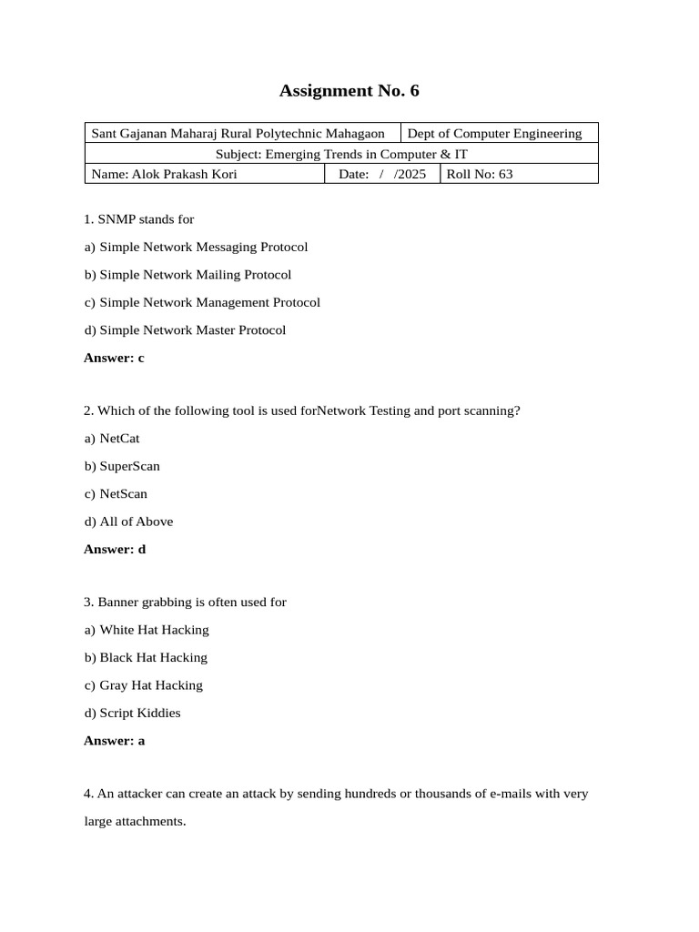Name: Alok Prakash Kori Date: / /2025 Roll No: 63