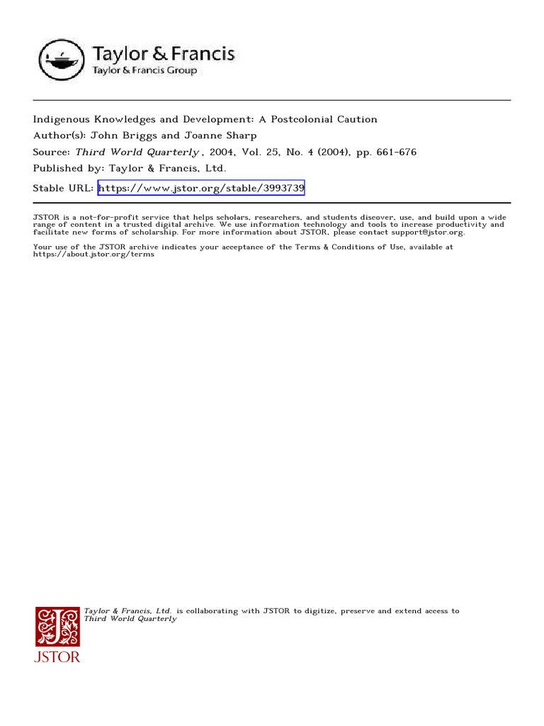 Mearns, 1996; Sillitoe, 1998). They argue that other knowledges-the indige-