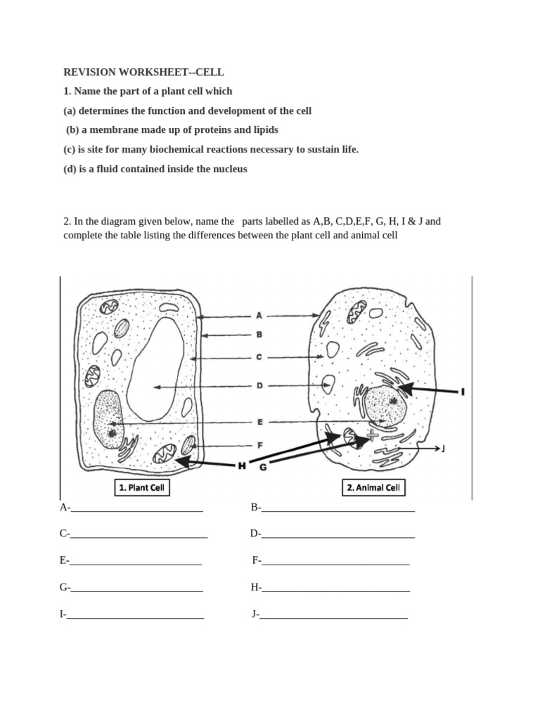 2. In the diagram given below, name the parts labelled as A,B, C,D,E,F, G, H, I & J and