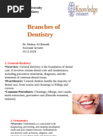 1. Dentistry as a Field: Dentistry is the branch of medicine dedicated to