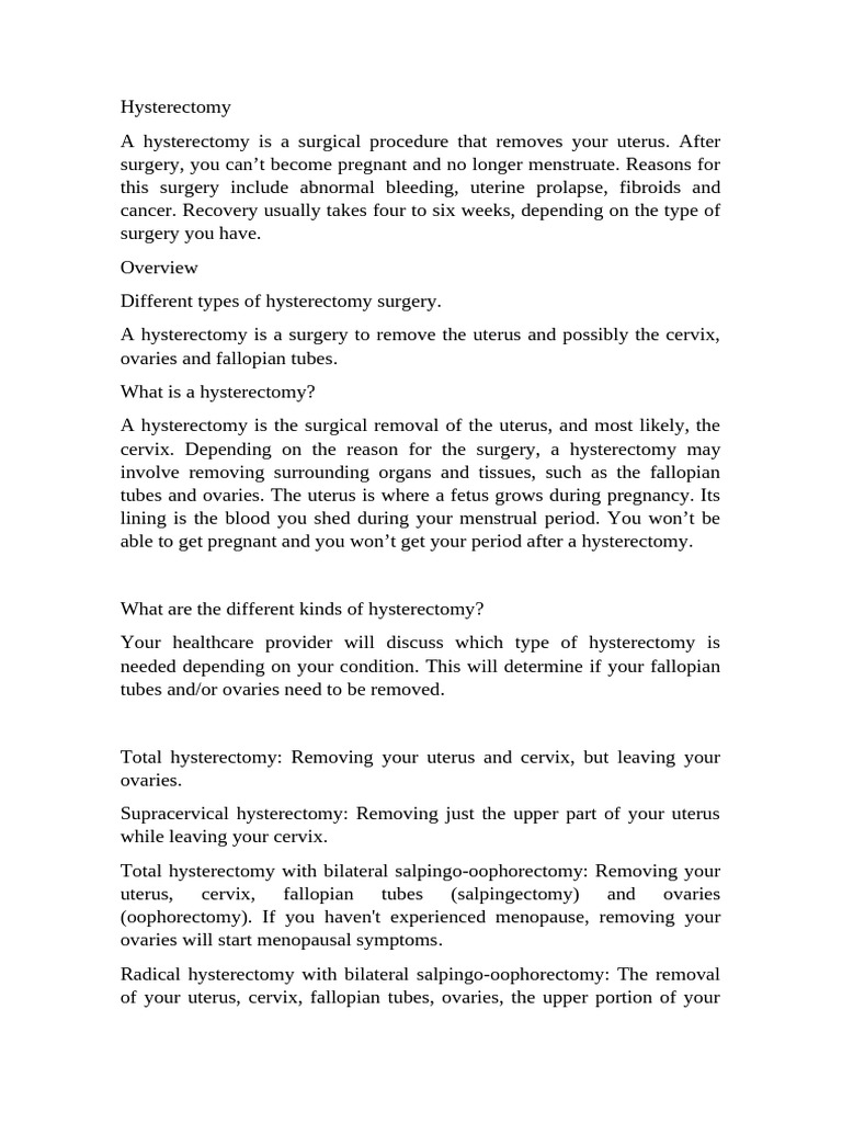 Your healthcare provider will discuss which type of hysterectomy is