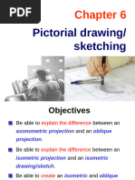Be able to explain the difference between an axonometric projection and an oblique projection. Be able to explain the difference between an isometric projection and an isometric drawing/sketch. Be able to create an isometric and oblique sketches from an actual object and multiview drawing.