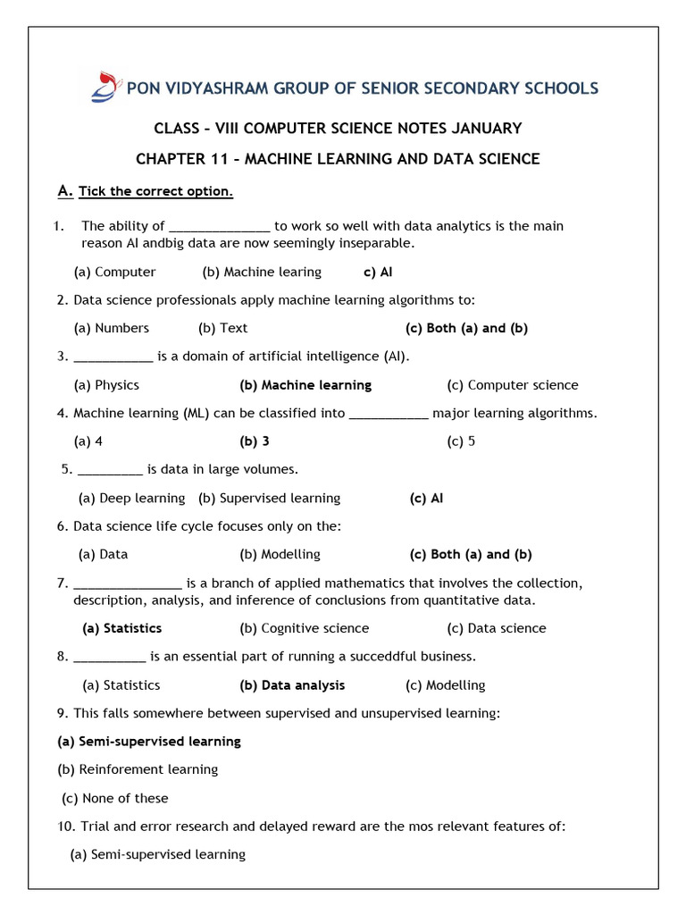 (a) Statistics (b) Cognitive science (c) Data science