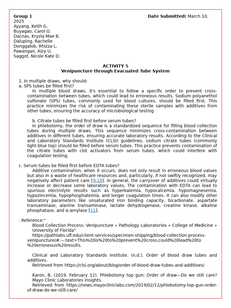 Clinical and Laboratory Standards Institute. (n.d.). Order of blood draw tubes and