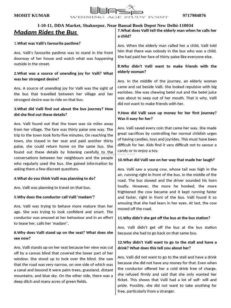 5.Why does the conductor call Valli 'madam'? and faster, right in front of the bus. Valli found it so
