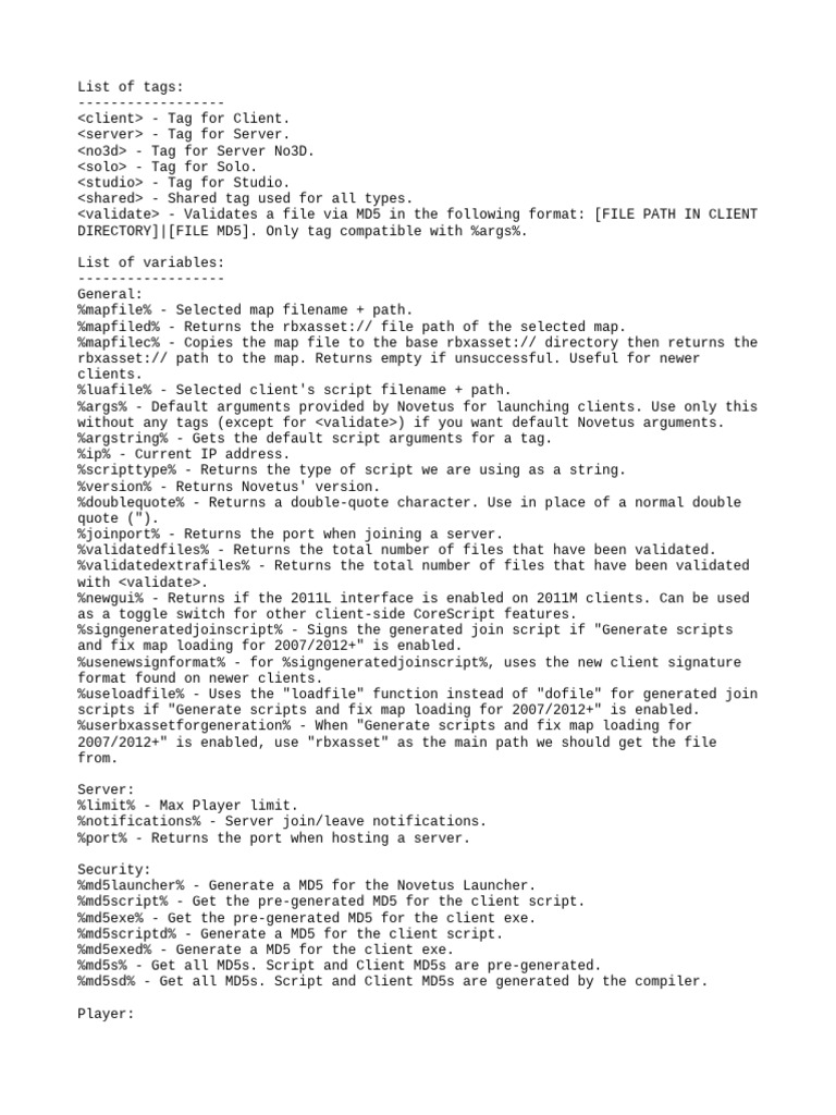 %md5sd% - Get all MD5s. Script and Client MD5s are generated by the compiler.