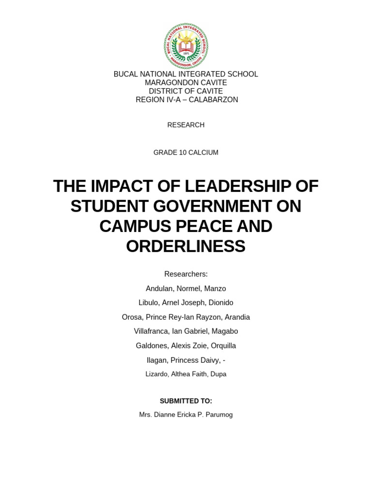 Student Leadership and Campus Peace and Orderliness is essential on building an