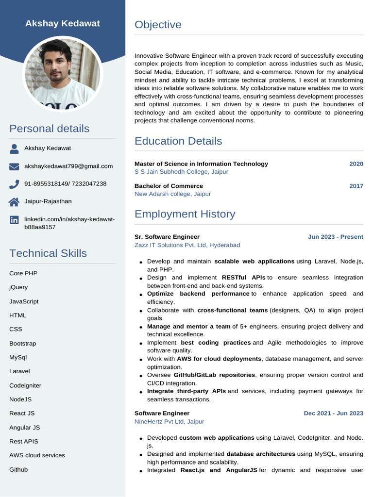 Developed and maintained scalable web applications using Laravel, Node.js,