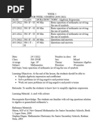 Lesson Plan: Algebraic Expressions