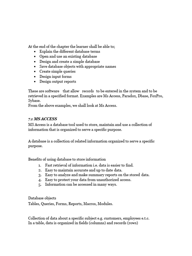 7.1 MS ACCESS