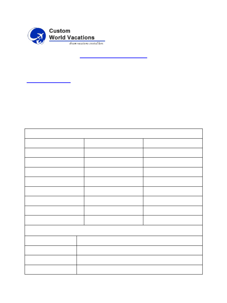 □ I have read and understand the Custom World Vacation Terms and Conditions.