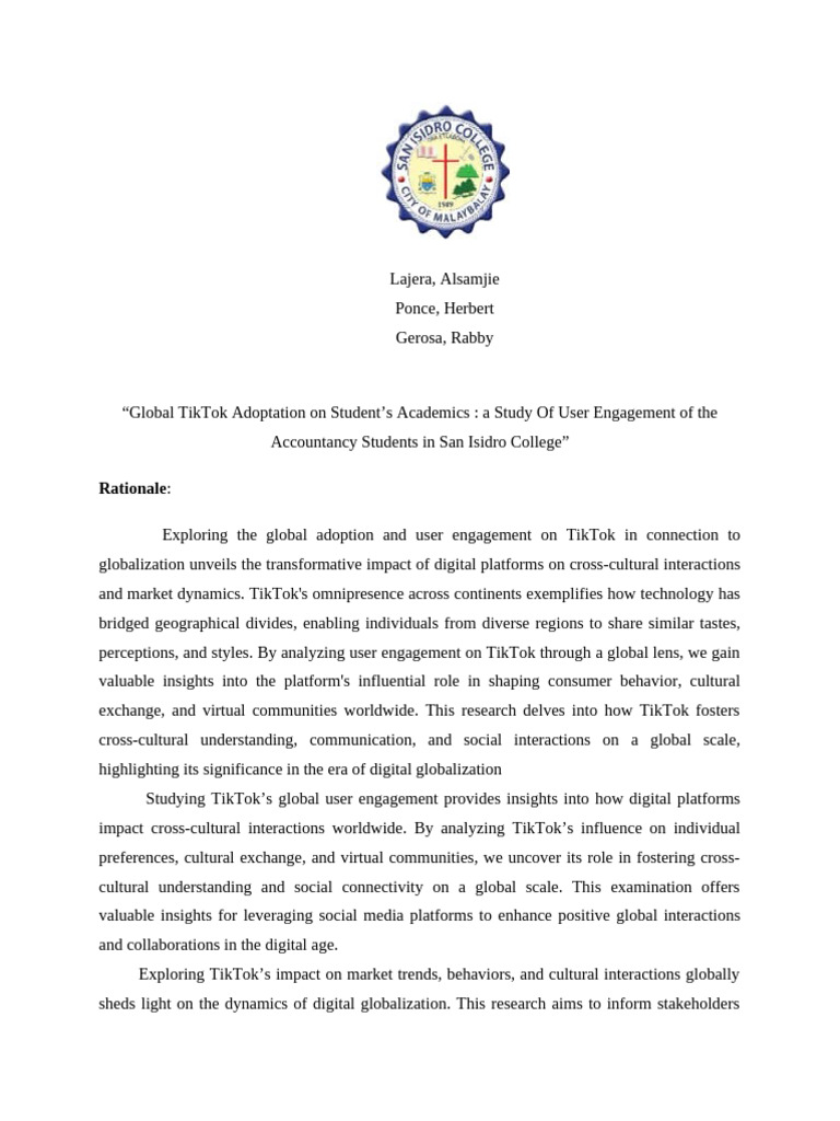 “Global TikTok Adoptation on Student’s Academics : a Study Of User Engagement of the
