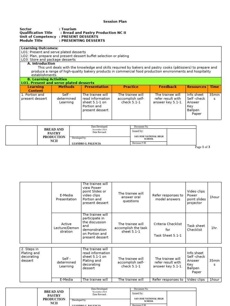 LO1: Present and serve plated desserts