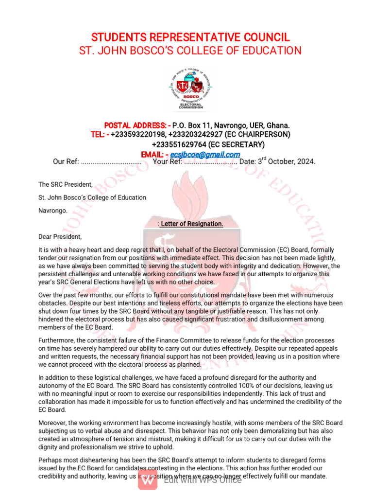 : Letter of Resignation.