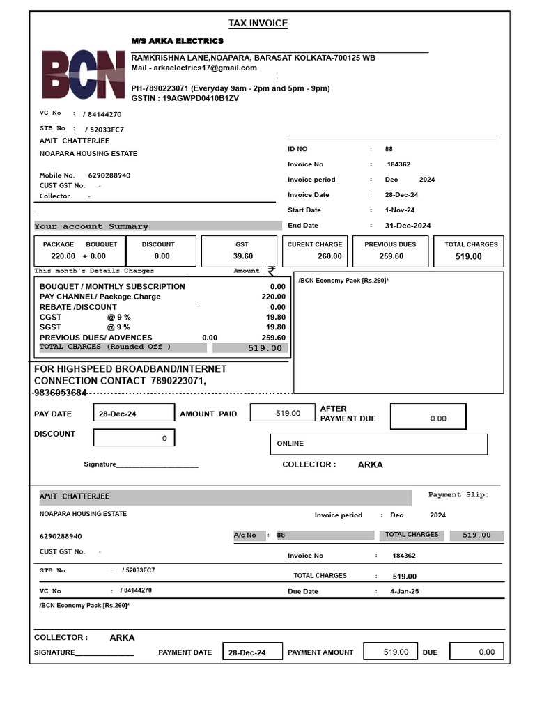 PAY DATE 28-Dec-24 AMOUNT PAID 519.00